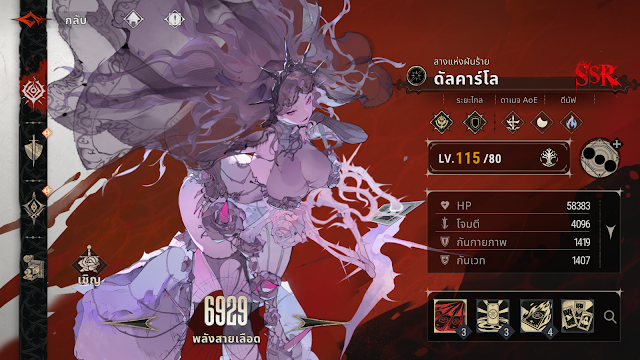 เซราฟินา (Seraphina) ตัวละครนักยิง สังกัดคริสตจักร 1 ในทีมนักล่าสายลม สามารถบัฟคริดาเมจให้กับทีมนักล่าสายลมได้ จุดเด่น / ข้อดีของตัวละคร โจมตีปกติ - ที่เลเวล 10 ทำดาเมจกายภาพ 150% และมอบ "ขนนกส่องแสง" 1 สแต็กให้โดยถาวร ขนนกส่องแสง: เมื่อผู้ถือครองตายลง ทั้งหมดนั้นจะแปลงเป็น "ขนนกแห่งสงคราม" ในจำนวนที่เท่ากันให้แก่เซราฟินา สะสมสูงสุด 20 สแต็ก ขนนกแห่งสงคราม: อัตราคริเพิ่มขึ้น +6%, ดาเมจคริเพิ่ม +8%; สะสมได้สูงสุด 20 สแต็ก สกิลพิเศษ - ทำงานหนึ่งครั้งทุก ๆ 3 การโจมตีปกคิ โดยยิงขนนกออกเป็นรูปกรวยไปยังเป้าหมาย ที่เลเวล 10 ทำดาเมจกายภาพ 600% และมอบ "ขนนกส่องแสง" 1 สแต็ก พรสวรรค์ - - "กลไกล" (ยิ่งเป้าหมายอยู่ไกลยิ่งแรง แต่ยิ่งใกล้ยิ่งเบา) - เมื่อเริ่มต่อสู้ จะมอบบัฟ "เพิ่มความไวโจมตีขึ้น (เล็กน้อย)" ให้ตัวเองและพวกพ้องบนช่องด้านหน้าและด้านซ้ายของนางอย่างถาวร ไม่สามารถลบล้างได้ - เมื่อนักล่าสายลมหลบดาเมจจากโจมตีปกติได้ จะได้รับ "ขนนกแห่งสงคราม" 1 สแต็ก เป็นเวลา 10 วิ เอฟเฟกต์นี้จะถูกใช้ได้งาน 1 ครั้งในทุก ๆ 2 วิ อัลติเมท - ค่า cost...